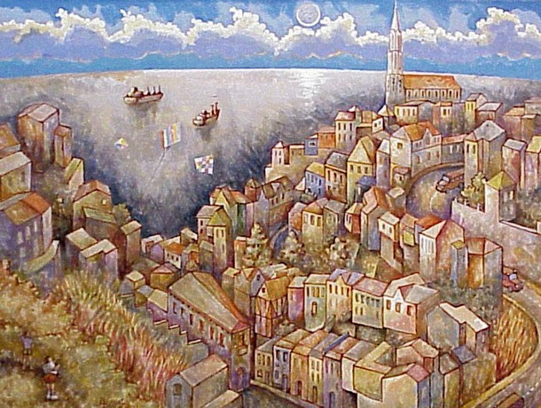 Juan Bernal Ponce (1938-2006), chileno. Bernal Ponce fue un pintor que trabajó en la figuración y la abstracción, predominando en su obra los colores brillantes, y creando composiciones en las que pueden estar presente lo real o lo imaginario. Desde los años setenta, por persecuciones políticas, se radicó en Costa Rica.